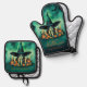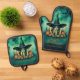 Add a spooky and fun touch to your kitchen with our Attractive & Mystical Halloween Witch Conjures Enchanting Spells Amid Glowing Candles And Vibrant Pumpkins Under A Moonlit Teal Sky Oven Mitt & Pot Holder Set. This oven mitt and pot holder set features a mystical witch in a magical Halloween scene with vibrant pumpkins, glowing candles, and a moonlit teal sky.