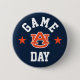 This spirited button design proudly showcases support for Auburn University on game day! It features the iconic Auburn "AU" logo prominently displayed at its centre, vibrant in its traditional orange and blue. Above and below the logo, the words "GAME" and "DAY" are boldly presented in white, arched lettering with an orange outline, perfectly capturing the excitement of game day. Two orange stars flank the 'AU' logo, adding to the energetic display. The button's bold blue background emphasises the team colours, making it an ideal way to show your allegiance to Auburn University and its cherished traditions.