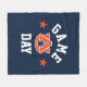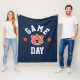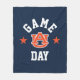 This cosy fleece blanket proudly showcases support for Auburn University on game day! It features the iconic Auburn "AU" logo prominently displayed at its centre, vibrant in its traditional orange and blue. Above and below the logo, the words "GAME" and "DAY" are boldly presented in white, arched lettering, perfectly capturing the excitement of game day. Two orange stars flank the 'AU' logo, adding to the energetic display. The blanket's bold blue background emphasises the team colours, making it ideal for staying warm while cheering on the Auburn Tigers, whether at home or at the stadium.