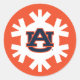 This design pattern features Auburn University's emblematic "AU" logo in bold navy blue with an orange outline. The word "Auburn" appears in stylised, uppercase navy blue letters with orange accents, providing a prominent contrast against the white background. An additional graphic of a tiger's eyes, enclosed in an oval shape with an orange border, reinforces Auburn’s iconic mascot. Scattered across the design are minimalist starburst shapes and small dots in navy blue, adding a festive and dynamic touch that complements the university's spirit and colours.