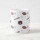 This design pattern features Auburn University's emblematic "AU" logo in bold navy blue with an orange outline. The word "Auburn" appears in stylised, uppercase navy blue letters with orange accents, providing a prominent contrast against the white background. An additional graphic of a tiger's eyes, enclosed in an oval shape with an orange border, reinforces Auburn’s iconic mascot. Scattered across the design are minimalist starburst shapes and small dots in navy blue, adding a festive and dynamic touch that complements the university's spirit and colours.