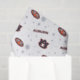 This design pattern features Auburn University's emblematic "AU" logo in bold navy blue with an orange outline. The word "Auburn" appears in stylised, uppercase navy blue letters with orange accents, providing a prominent contrast against the white background. An additional graphic of a tiger's eyes, enclosed in an oval shape with an orange border, reinforces Auburn’s iconic mascot. Scattered across the design are minimalist starburst shapes and small dots in navy blue, adding a festive and dynamic touch that complements the university's spirit and colours.