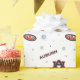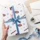 This design pattern features Auburn University's emblematic "AU" logo in bold navy blue with an orange outline. The word "Auburn" appears in stylised, uppercase navy blue letters with orange accents, providing a prominent contrast against the white background. An additional graphic of a tiger's eyes, enclosed in an oval shape with an orange border, reinforces Auburn’s iconic mascot. Scattered across the design are minimalist starburst shapes and small dots in navy blue, adding a festive and dynamic touch that complements the university's spirit and colours.