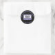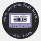 Lilac vintage audio cassette tape. Vector icon with customisable colours. Custom background colour. Two custom text fields on circle amd one on tape label.