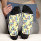 Using a pencil to rewind a tape. Seamless pattern. Custom background colour. Custom top stripe colour. Custom text on each sock.