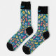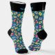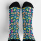 Colourful audio cassettes. Seamless pattern. Custom background colour. Custom top stripe colour. Custom text on each sock.