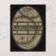 An oval badge with a chain link fence overlay a human brain wearing headset. In the centre of the badge is a text message that read, Audio Hazard. The over all image is done in a wood grain filter that gives it a vintage look.