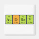 Audrey spelled out as Au D Re Y (Gold Deuterium Rhenium Yttrium) on a magnet for the scientist in you.