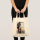 The printing came out very well, better than I had anticipated. The natural color fabric is sturdy with strong seams and comfortable handles. This tote fits easily over my shoulder. As it is filled, the bottom flattens out--very cool! I would buy this product again. This grocery tote holds a lot of groceries! The image quality was very good. The colors were a little darker than I had expected. The darkness may have been due to printing on a natural color fabric rather than on white. The cat design is attractively centered on the tote. The spirit of the design is very lively, just as it appears on the Zazzle website.