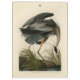 John James Audubon was one of the America's great naturalists, documenting hundreds of birds species with great precision as he made his way across America and drew in detail the wild birds of America. Audubon then published lithographs of his scientific drawings of the American birds, and this Great Blue Heron is among the best Audubon lithographs made by Audubon. The Great Blue Heron is actually a slate grey heron with blue tints and with striking markings- a black shoulder, white face, and a white crown with black stripes. It's a large heron - the largest in theU.S. The Great Blue Heron has a bill that is strong, long and yellow. The colours of the heron's thighs are a chestnut brown. The Audubon great blue heron is standing in the marsh, with marsh grass around it, and it is obviously looking for fresh fish, as its great yellow beak is turned down towards the water. This Audubon bird print of the Great Blue Heron is a beautiful bird print, and a classic image from the early 1800s.