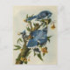 Three Blue Jays painted by John James Audubon in late 1825. The three birds are stealing eggs, probably from a dove or quail nest. Of Blue Jays, Audubon himself wrote, "Who could imagine that a form so graceful, arrayed by nature in a garb so resplendent, should harbour so much mischief..." This reproduction painting gift can be customised -- make it your own! A beautiful and common backyard bird in an uncommon work of art by a true American original - John James Audubon.