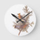 Audubon's Cedar Waxwing Bird Pair on Juniper Tree Round Clock