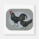 The cup like combs of Augsburger chickens are unusual and attractive as well as their glossy black plumage. They lay white eggs.