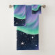 Aurora Borealis, Green & Purple pattern Bath Towel Set