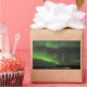 Sticker with green rays of aurora borealis (northern lights) in the night sky over a frozen lake in Lapland.