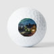Nice golf ball with beautiful Aurora borealis over winter cabin.