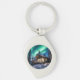 Aurora borealis over winter cabin key ring