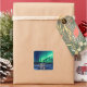 Nice square sticker with beautiful Aurora borealis over winter cabin.