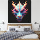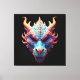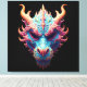 This psychedelic dragon portrait — cobalt blue, coral horns, burning gold — is fantasy art with genuine gallery presence. Ancient power. Modern walls. Also ideal as a great gift!