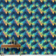 A seamless pattern featuring the blue-green and yellow hues of the aurora borealis, with silhouettes of pine trees scattered throughout. The design captures the ethereal beauty of the northern lights against a serene forest backdrop.