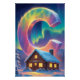 Bring the calm magic of the arctic night sky into your space with this Aurora Letter C poster. A glowing letter C rises above a snow-covered forest, illuminated by flowing waves of Northern Lights in brilliant shades of turquoise, emerald, and violet. The aurora shimmers across the sky, softly lighting the snow below and highlighting a peaceful cabin in the winter snow at base of the monogram.