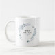 This bridal coffee mug features elegant dusty blue and white florals and an elegant minimalist font. It's perfect for any bride-to-be.
