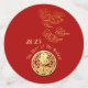 Golden paper-cut of a Rabbit into a circle + golden Chinese Auspicious clouds (line graphic). Design on table confetti with red background and texts: 2023, The Year of The Rabbit. Matching greeting card, holiday postcard, invitation, craft supplies, party supplies and more... Perfect for Chinese New Year of the Rabbit 2023 or birthday (people born in Rabbit Year).