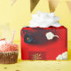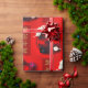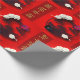 Design with stylised Auspicious clouds in white + 2 flowers in 3D + dark blue tiger paper-cut with drop shadow (image printed) into a red square with drop shadow with dark red background. Design on wrapping paper with "Happy New Yea" in Chinese.
