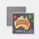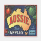 Aussie Apples from Tasmania is a vintage fruit crate label from 1933 . A map of Australia in the centre with red and green apples around it.