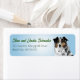 Blue Merle Aussie against a blue and white background. Personalise with your address, good for medium to long addresses. Illustrated and designed by world renown artist @Jacqueline Schneider