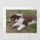 Adorable red tri Australian Shepherd or Aussie puppy taking a nap on the lawn!