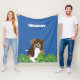 Add a name or other text to create a personalised blanket that's perfect for dog lovers. This fleece throw blanket has an illustration of an Australian Shepherd along with some green tropical leaves with a space to add a name in bold white lettering on the backs.