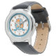 Austin boys single line name meaning heraldry knights shield kids wrist watch. Knights style shield monogram letter A art name simple numbered clock face perfect for in shades of orange, blue white and grey. Personalise with your own name and name meaning for a a great unique personalised gift, this example is for names with the letter A and currently reads Austin Magic dignity. Other matching items available. Unique shield drawing, graphic art, name research, wording and design by Sarah Trett. www.sarahtrett.com for www.mylittleeden.com