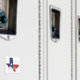 Austin, Texas flag map magnet. This design features "Austin" in a script, calligraphy style font in white with light grey outline on top of the map of the state that's filled with the flag of Texas. This hometown magnet is a great way to show that you are proud to be from Austin, TX.