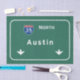 Austin Texas tx The IDEAL gift for anybody wanting a unique reminder of their favourite location! This familiar interstate sign design features the authentic and accurate typography officially used by the FHA/MUTCD. Our design also uses the exact same Pantone colour specifications. Interstate : Highway : Freeway : Street : Road : Sign : Signage Automotive : Automobile : Auto : Car : Travel : Gifts and Souvenirs .
