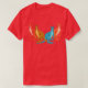 I give wanted to give this a 4 instead of a 5 because these Basic DARK T0shirts run unexpectedly SLIM or Narrow. Which is great if you do not have a potbelly, but I have a paunch. It isn't the shirt's fault that I've got a beer belly. The design and shirt itself is a quality cotton shirt. The color is more of a deep purple, but still a very pretty color. The Basic DARK T-shirts run a bit SLIMMER than the Basic Ts. The neck is a fraction narrower (or seems to be narrower) also. I'm a paunchy middle-aged woman and my neck is 12 inches (31cm) thick and the neckline fell about the same as in the photo of the man, and I had the desire to tug it a bit. So if you're a thick necked man or like loose shirts, be aware these are slimmer shirts. Once I get rid of my lockdown paunch it'll look great. The shirt washed well in cold water with no apparent bleeding. We don't have a dryer, so it hung dry. Did not shrink. Love the colors and the design. The design looks smaller on my shirt than it does on the model on-line. But still, it looks good on the shirt. The printing looks as it does on the model, just the size seems fractionally smaller. Washed garment in cold water, hung dry and design appeared unaffected.