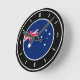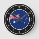 Australia Flag Elegant Round Clock with the Australia flag positioned in the middle and lovely white clock numbers on the clock edge. Delightful black background with the white oval elements finalise the design putting emphasis on the elegance. Beautiful combination of black and white with the skilful integration of the national flag colours make this clock the perfect gift and the great show piece on the wall. © 2022 CountriesOfTheWorld