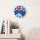 keep time with patriotic flair using this australia map silhouette wall clock. the continental shape is beautifully filled with the classic union jack flag colors, creating a functional piece of art for your kitchen, study, or office. this unique timepiece serves as a constant reminder of the land down under and makes an excellent conversation starter for guests. durable and stylish, it is a thoughtful housewarming gift for anyone who loves australian heritage and bold graphic design.