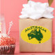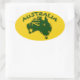 Australian flag in the shape of Australia with a shadow effect green and gold above in an arc is the word Australia, great for supporting the Australia national team at various sporting events. sgb01