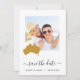 Let guests know to save the date for your wedding with this pretty minimalist photo card with a map outline of the location of your event.