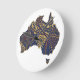 This image is an embellished decorative doodle design in the shape of the continent and country of Australia including Tasmania. I drew this in pen, ink, and graphite and then digitally altered it to colour it with rich hues of natural tan or khaki, dark navy blue, and dark maroon red.