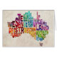 A typographic text map of Australia. The map is made from the names of the states and territories of Australia, in an urban watercolour style.