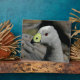 This odd bird is called an Cape Barren Goose or Cereopsis novaehollandiae, found in southern Australia. It's a big grey goose with black spots on the feathers, but it's most unique feature is its yellow (or yellowish green). It also has pink legs and black feet and is one of the world's rarest geese. I photographed this one on Phillip Island in Victoria Australia.