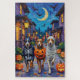 Adorable Australian Cattle Dogs dressed in playful Halloween costumes carry pumpkin buckets while trick-or-treating under the moonlit sky. This festive design highlights the breed’s speckled coat, intelligent eyes, and energetic spirit, perfectly capturing the spooky yet fun atmosphere of Halloween night. A lively celebration for dog lovers and Halloween fans alike.