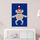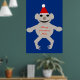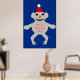 This poster features a cute cartoon of a Koala bear wearing a red and white festive santa hat. The Koala is grey with black eyes, brown nose and a smile. There is bright red text inside the tummy of the Koala that says "merry Christmas mate". This fun design is great for all Australians at home and all around the world.