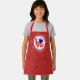 Personalised kid's apron with the Austrailian LOVE FLAG. The word LOVE, using a heart shaped flag of Australia as the O, is featured in red letters inside a white, fractal circle of squiggly squares. The circle sits on a red, fractal background, also, of squiggly squares. Great for kids at your next occasion or party to celebrate all things Aussie. Can be customised for any occasion, especially Valentine's Day.