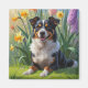 Australian Kelpie Dog Spring Flowers Painting Magnet