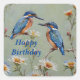 Australian Kingfisher Birds And Flowers Oil Paint, Square Sticker