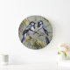 Australian Magpies In Wattle Trees Oil Paint, Large Clock