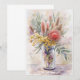 Send a touch of Australia with this elegant greeting card featuring a curated mix of native flowers—waratah, banksia, eucalyptus, and golden wattle. The artwork is text-free on the front, letting the beautiful florals shine for any occasion.
